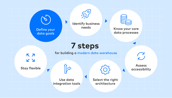 Ovo su samo neka od pitanja koja možete postaviti kada definišete svoje ciljeve u vezi sa podacima. Odgovaranjem na njih možete bolje razumeti svoje trenutno stanje podataka, što vam omogućava da identifikujete problematična područja ili neefikasnosti koje bi mogle imati koristi od modernog data warehouse-a.