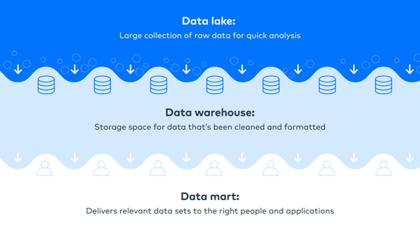 Većina skupova podataka sastoji se od data lake-a, data warehouse-a i data mart-a.